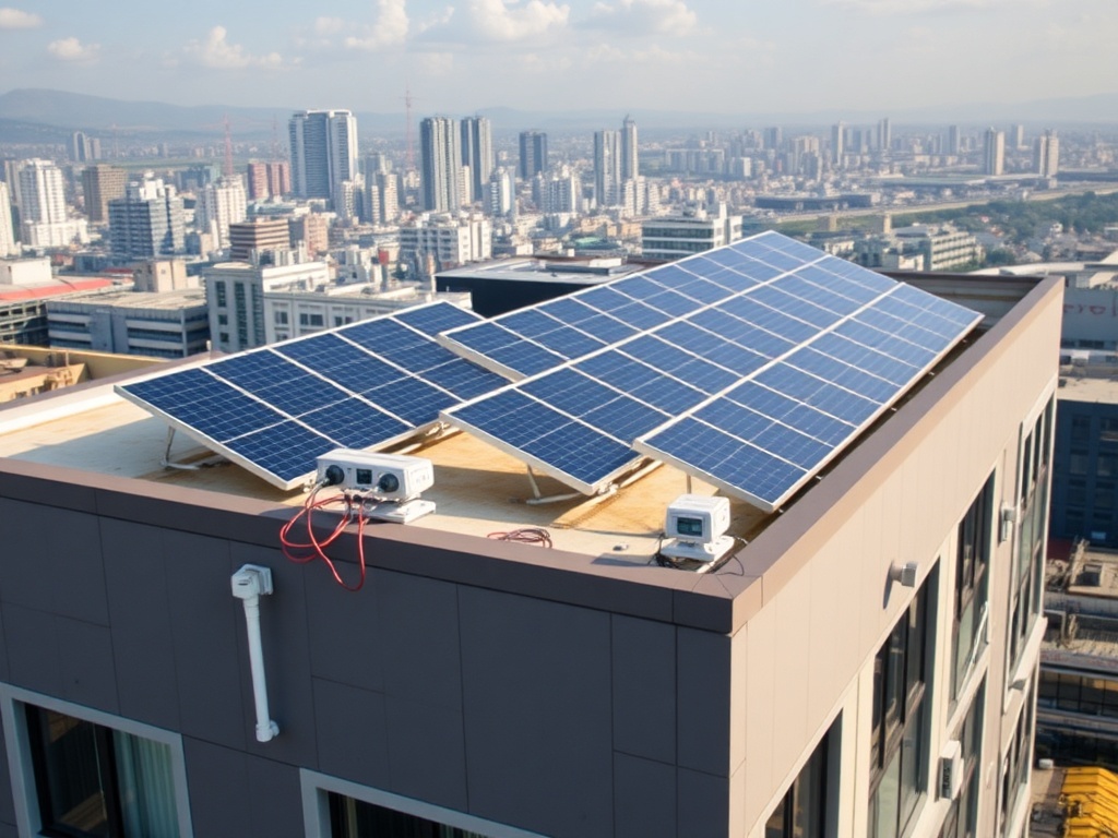 Modern commercial facility with integrated rooftop solar and advanced monitoring systems.